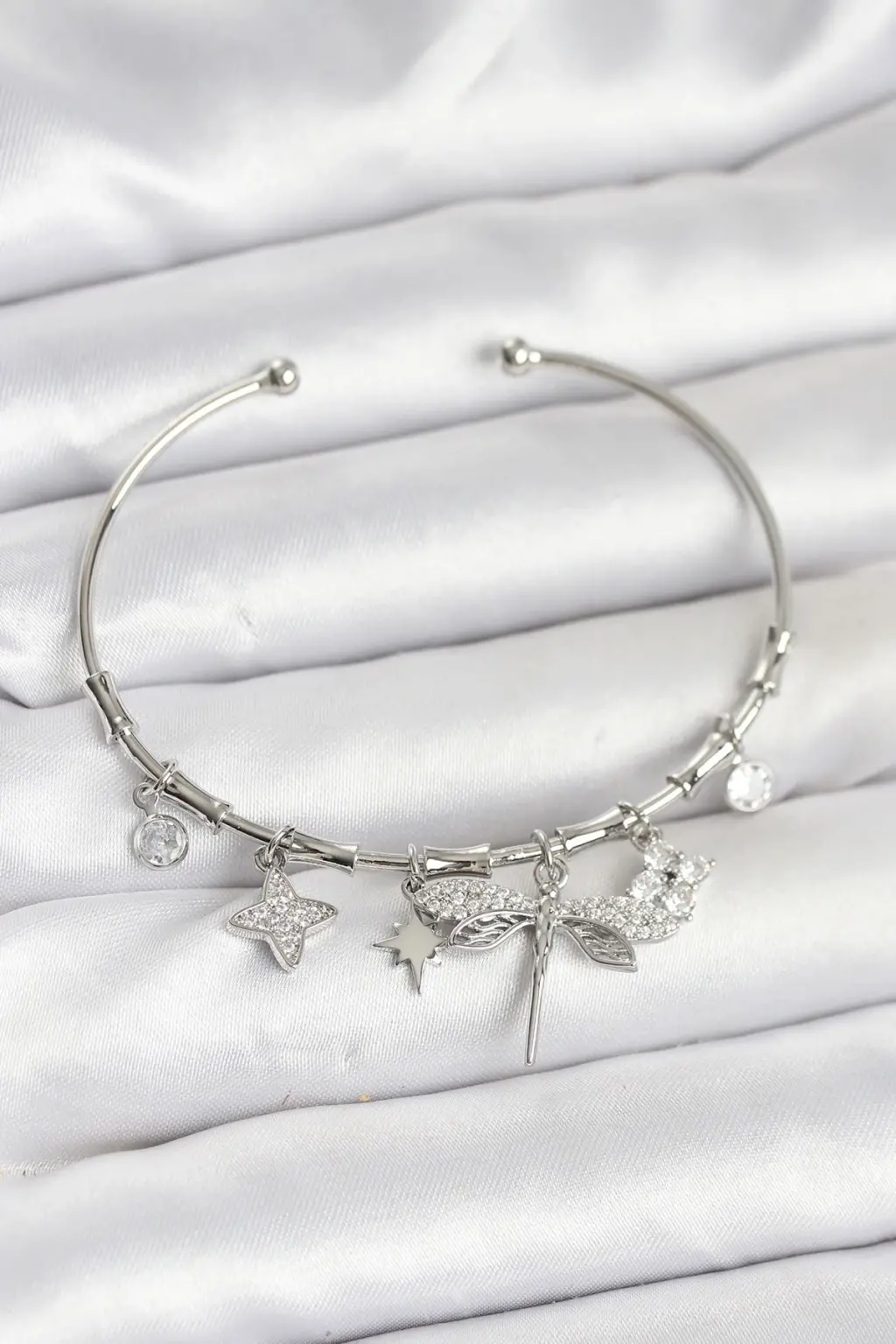 Yusufçuk Charmlı Gümüş Renk Pirinç Kadın Bileklik Eşşiz tasarımıyla sizlerle. En uygun fiyat garantili kararmaz modelimiz karşınızda.