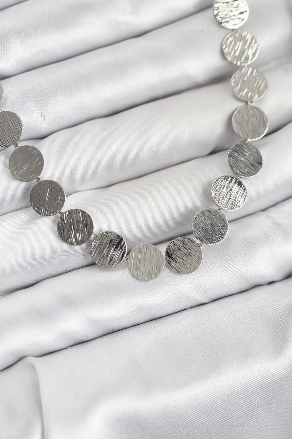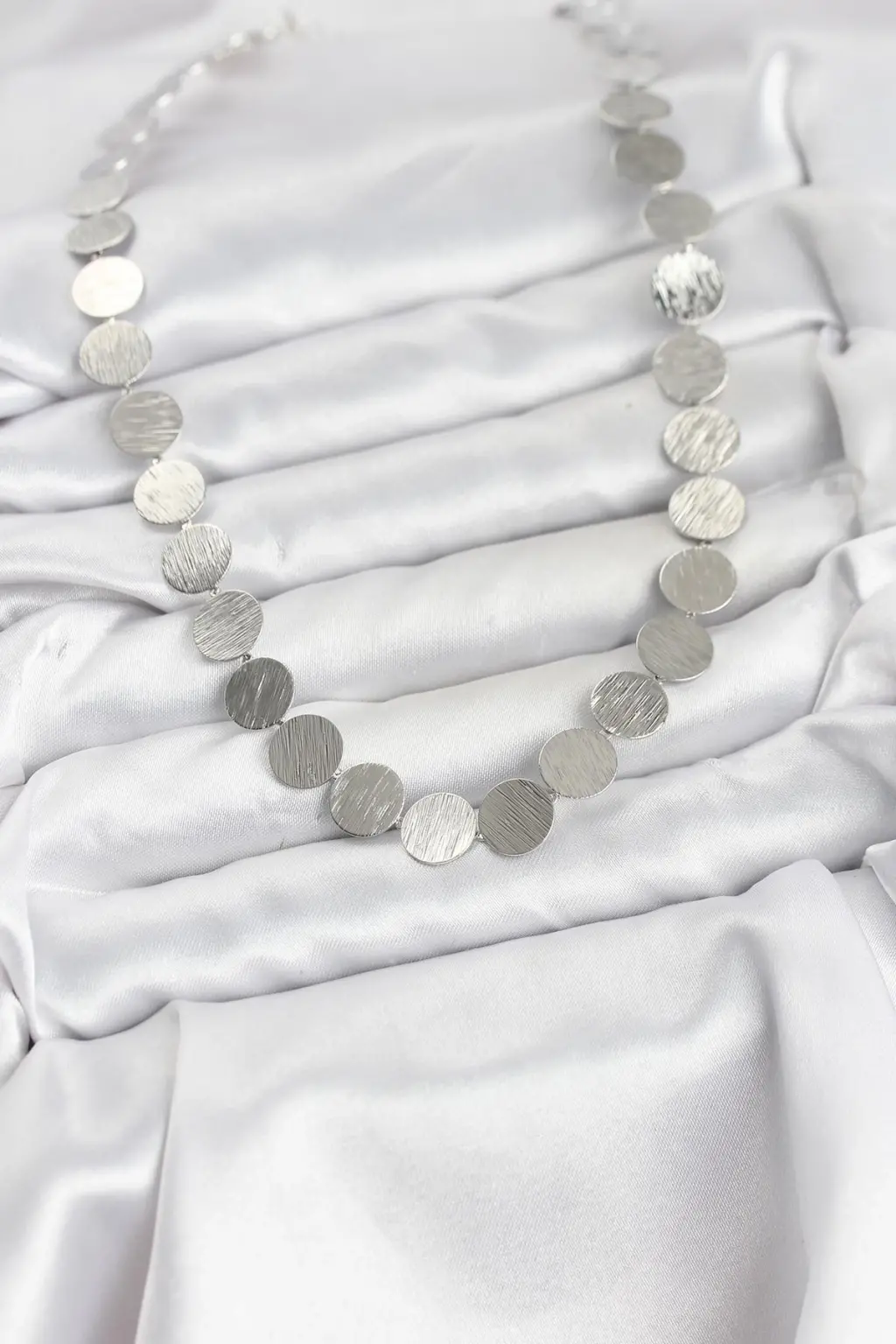Gleam Yuvarlak Plaka Model Gümüş Renk Kadın Kolye, şıklığı ve zarafeti bir arada sunuyor.